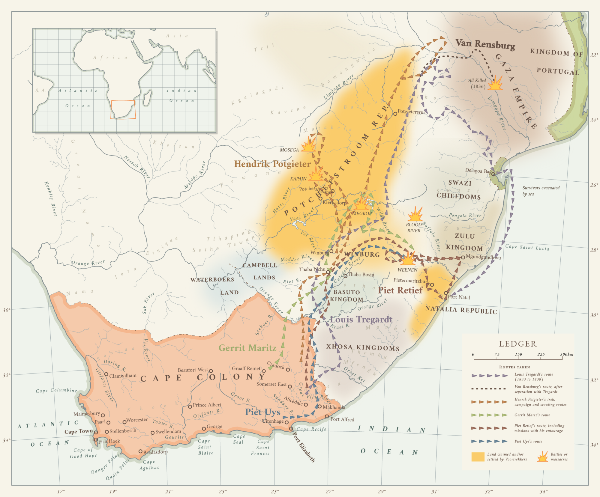 Results of ‘The Great Trek’ depicted in 1840 by GustafMaps on